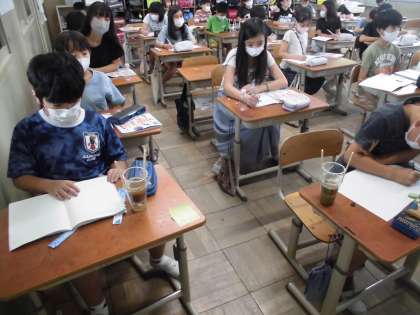 運動場の砂と土を使って、水のしみこみ方の違いを実験しました。