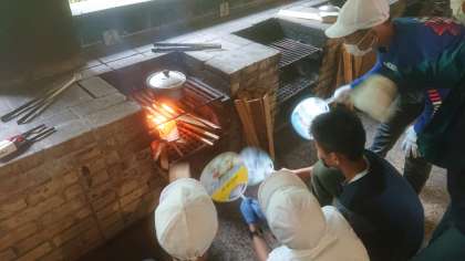 薪の着火に苦労し,火が付いた後も煙に苦戦しながらテキパキと作業を進め、上手につくることができました。