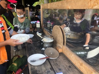 飯盒でご飯を炊く役、材料を切ってカレーを作る役、