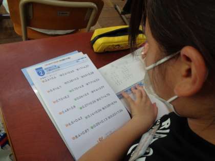 算数道場の時間です。小数のかけ算の復習をしました。
