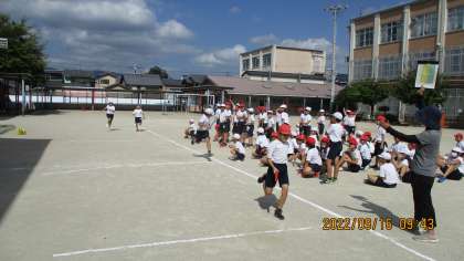 バトンパスがスムーズにできるように集中して取り組んでいました。
