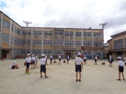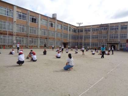 今日は,体育フェスティバルの学年競技「玉入れ」の入退場、進め方の確認をしました。