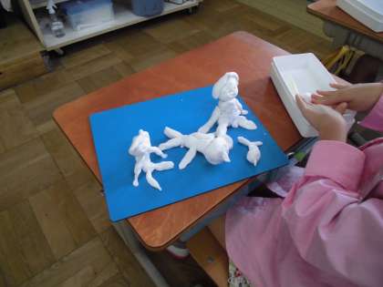 粘土を使って自分自身と動物などを作って,お散歩をしている様子を表しました。