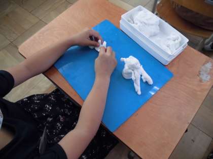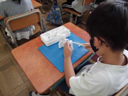 丸めて顔を作ったり,伸ばして足や手を作ったりしました。