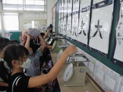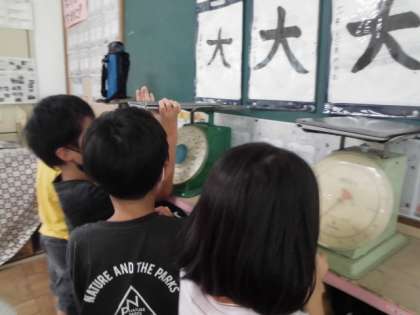 2キログラムまで量れるはかりで学習をしました。
