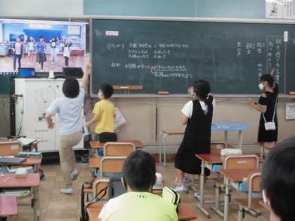 0927 3年生 昼休み 公開日 2022/09/27 更新日 2022/09/27 3年生 昼休みに体育フェスティバルの準備体操の曲を鳴らして練習をしていると、同じ中学年の部で活動する4年生の友達が廊下で一緒に踊り出していました。 当日は、4年生が前に立って踊ってくれます。 3年生のみんなも4年生と一緒に踊れてとても嬉しそうでした。