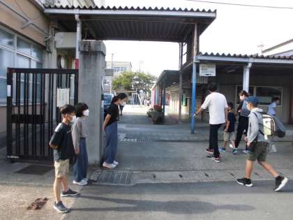 今日は4年生の2人があいさつ運動のため、門のところで登校してくる人たちを待っていました。