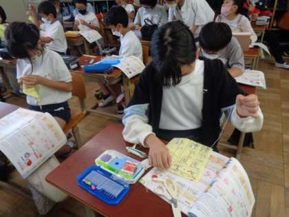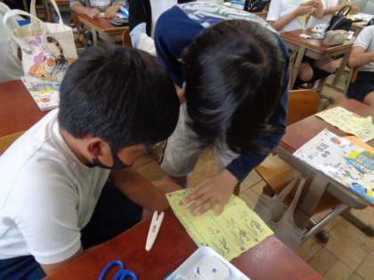 教え合いながら、ていねいに縫おうと一生懸命の子ども達です。