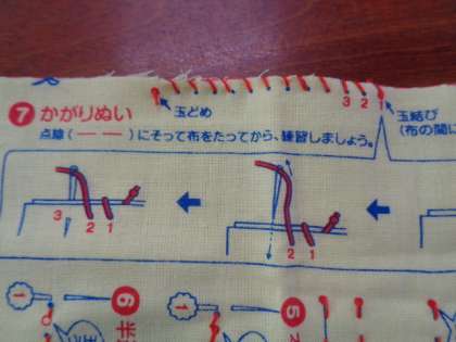 家庭科の学習「ひと針に心をこめて」で、かがりぬいの練習をがんばっています。