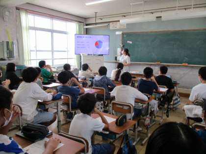 食の学習で朝食について考えました。赤・黄・緑の食品のグループ分けをもとに栄養バランスのとれた朝食メニューを考えました。バランスのよい食事を食べて毎日元気に過ごせるようにしましょう。