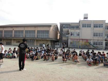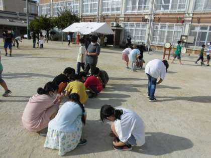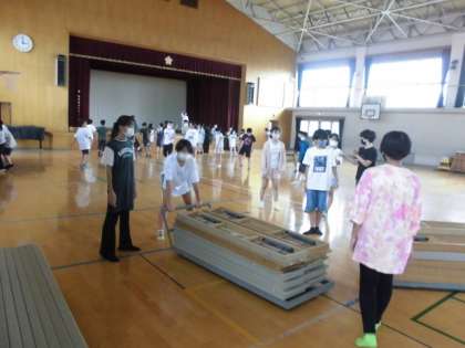 無事体育フェスティバルのリハーサルを終えた後の6時間目、5年生と一緒に前日準備をしました。明日の朝並べるいすを準備したり、運動場の石拾いをしたりしました。各係活動の最終打合せや練習もしました。