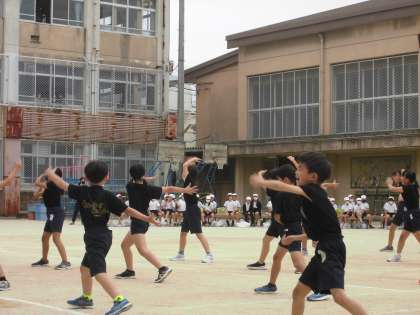 4年生のロックソーランでは、4年生が最初から最後まで学習の成果を発揮して踊ることができました。「どっこいしょ、どっこいしょ」の元気な声が運動場によく響いていました。