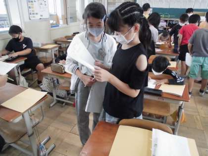 最後には、友達同士でこのキャリアパスポートに書いたことをもとに、お互いに頑張ったことを交流しました。