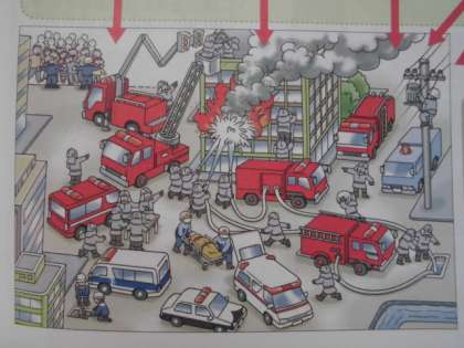 今日は。教科書の挿絵から、火災現場にどのような人や車が集まっているかをみつけました。その中から、知りたいことや不思議なことを今後の学習で調べていきたいと思います。