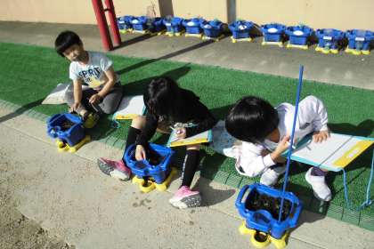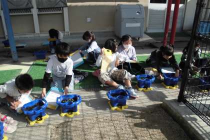 今日植木鉢を見て、「芽がいっぱい出てる」と喜びの声をあげていました。