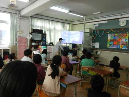 担任の先生から、『呉竹総合支援学校』の学校の様子や、がんばっていることなどの話を聞きました。