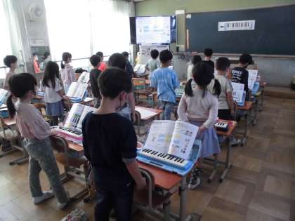 1021 1年生 音楽 公開日 2022/10/21 更新日 2022/10/21 1年生 鍵盤ハーモニカの練習を頑張っています。 実際に演奏する前に、階名や指番号でうたってから練習しています。 指づかいに気をつけながら一生懸命ふいています。