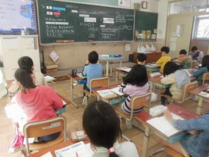 算数の学習では、新しい単元「何倍でしょう」に入りました。何倍になっているかを求める文章題の学習です。文章題は少し苦手という児童も少なくありませんが、文章を読んで関係図に表すことで立式に繋げていきます。