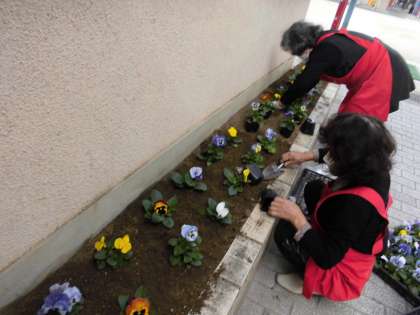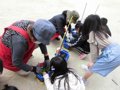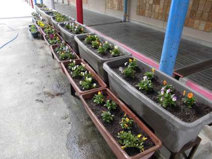 女性会のみなさんが、学校のお花を植え替えてくださいました。