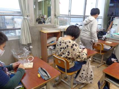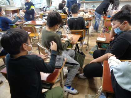 1101 5年生 図画工作科 公開日 2022/11/01 更新日 2022/11/01 5年生 「立ち上がれ!ワイヤーアート」の学習です。 はりがねの形をいろいろ変えながら、立ち上げてみました。 はりがねを組み合わせながら、おもしろい形を見つけました。 立体的な形をつくりながら、しっかり立ち上がる形に完成してきました。まもなく完成!!