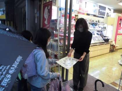児童館や学童へポスターをお渡しした後、学校の前のセブンイレブンさんやフードネットマートさん、商店街のクリーニング屋「よしみや」さんやサロンドマツヤさんにもお願い行きました。