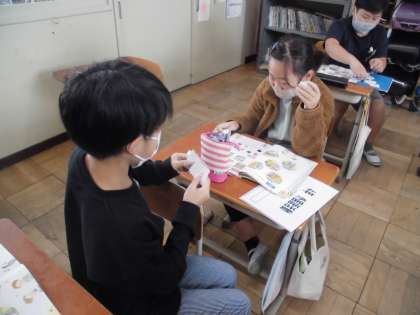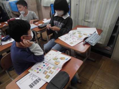 「Do you have 〜?」を使って、相手に尋ねることも行いました。予想しながら尋ねていく活動を楽しんでいました。