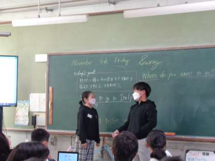 行きたい国とその理由について、たずねたり答えたりする言い方を知り、友達とやりとりをしました。