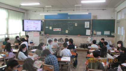1107 4年生 外国語活動 公開日 2022/11/08 更新日 2022/11/08 4年生 外国語活動の様子です。 今日は、What do you want?の学習が始まりました。 フルーツや野菜の発音を確認してから、ほしいものを尋ねたり答えたりする表現を学びました。 隣同士で、楽しくやり取りをしていました。
