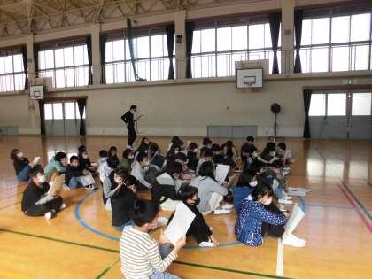 1107 4年 学習発表会に向けて 公開日 2022/11/08 更新日 2022/11/08 4年生 今日は、体育館を使用することができたため、台本を片手に、自分の台詞を言ってみました。目安は体育館の後方にあるクジャクの掲示物にめがけて声を響かせます。 まだまだこれからですが、4年生みんなで頑張っていきたいと思います。