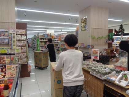 商品をならべたり、整理したり、バックヤードの仕事を体験させてもらったり、インタビューさせてもらったりしました。