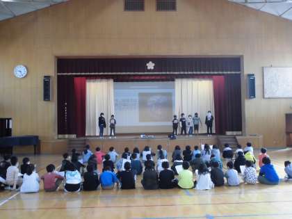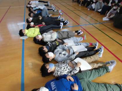 1108 4年 学習発表会に向けて頑張っています 公開日 2022/11/09 更新日 2022/11/09 4年生 自分の台詞をはっきりと体育館中に届くようにと、声の大きさにも気を付けながら発表練習をしています。 お腹から声を出せるように、お腹に手を当てながら仰向けになって発声練習をしてみました。みんなで声の出し方を確かめながら練習しました。本番に向けて仕上がりが楽しみです。