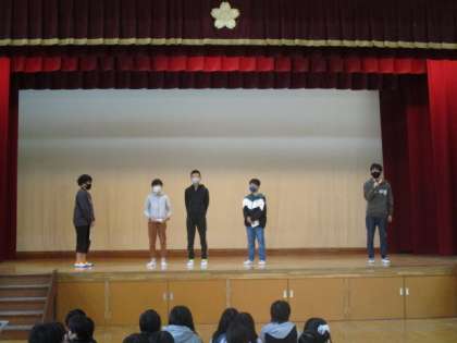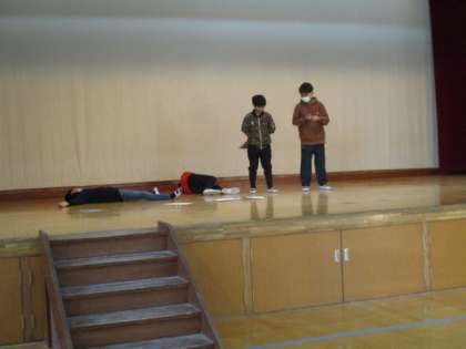 これまでは各場面ごとに練習をしていましたが、今日は全部を通しました。昨日までは別々に練習をしていたため初めてお高いの場面をしっかりと見合いました。見合った結果、課題は声の大きさやはっきりと言葉を伝えること、身ぶり手ぶりなどを大きくすることなどがあがりました。明日からも頑張りましょう。
