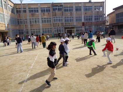 今日は、運動委員会主催のドッジボール大会がありました。1年生なので「ころがしドッジ」ですが、しっかりボールを見てよけたりボールの上を跳んだりして上手に逃げていました。