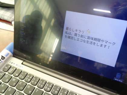 買い物の仕方について考えたり、上手な選び方を考えたりしました。そして、上手なものの選び方や使い方の学習から、環境や資源に配慮した生活をしていくことの大切さに気付きました。そして、これから自分が工夫していきたいことを「くらしキラリ!」とカードに表しました。