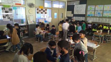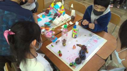 1213 1年生 生活 公開日 2022/12/13 更新日 2022/12/13 1年生 「あきといっしょに」の学習です。 これまでの学習で、秋の素材を使ってみんなで楽しめるものを作りました。 その作品について、頑張ったことや見てほしいところを伝え合い、いろいろ試行錯誤しながら作り上げてきました。 今日は、その作品を使ってあそび大会をしました。みんな楽しそうに遊んでいます。