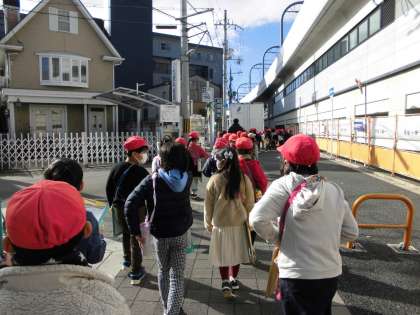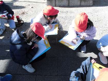 2回目の町探検へ行ってきました。横断歩道では手を挙げて渡るなど、安全に気を付けながら、淀の町を楽しんでいました。周りをよく観察し、どんなお店や場所があるのかたくさん書く姿が見られました。もっと知りたい場所は見つかったかな?