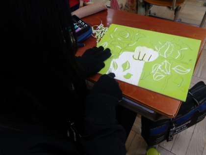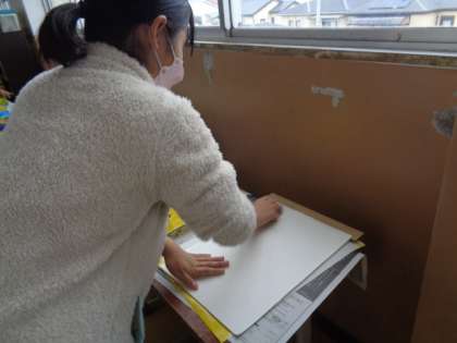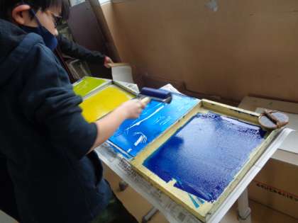 どこにどの色を刷りたいのか、そのためにはどの部分を彫るのか、考えながら取り組んでいます。