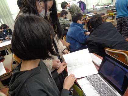 「このページを見て」というページをロイロノートに提出し、みんなで見合い、そのあと実際のノートを見せ合いながら、いいところを伝えたりまとめ方を聞いたりし合いました。