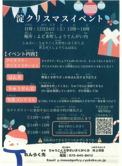 その学生さんたちが12月に商店街においてクリスマスイベントをされると聞き、「ぜひ、力になりたい!」、「その宣伝をしよう!」とアイデアをめぐらせました。
