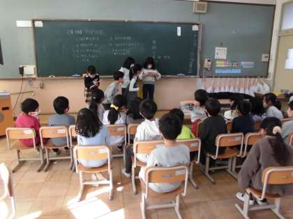 2学期最後の日はクリスマス会を楽しみました。みんなで楽しめる椅子取りゲームやハンカチ落としで盛り上がりました。マジックやクイズを用意している子たちはみんなが楽しめるように何日も前から準備していました。楽しい思い出になりました。