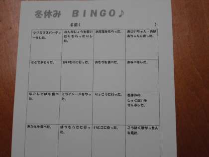 聞くために、「冬休みビンゴ」をしました。