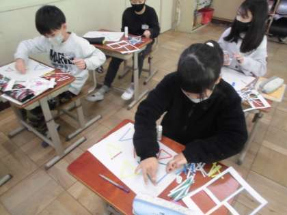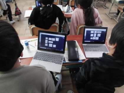 0111 3年生 算数 公開日 2023/01/11 更新日 2023/01/11 3年生 「三角形」色棒を使って自分の思う三角形を作っています。三角形とは、辺が3つ、頂点も3つあることを確認して作業をはじめました。 学習のまとめには、いろんな三角形をGIGA端末を使って仲間分けをしました。そして、辺の長さがみんな等しい、3つのうち2つが等しいなどに気が付くことができました。