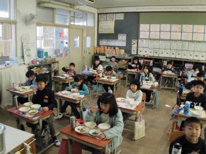 0111 2年生 2023年初の給食 公開日 2023/01/11 更新日 2023/01/11 2年生 今日から、給食が始まりました。 2023年の初めての給食は、お正月献立でした。 新年の気分を味わいながら、久しぶりにみんなで楽しく給食を食べました。