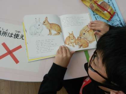 「あ!うさぎの本のコーナーがある!」