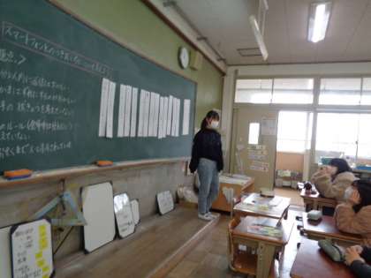 「スマートフォンとのつきあい方について考えよう」というめあてで学習しました。