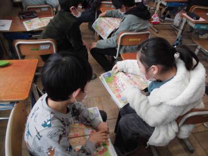 0116 4年 外国語活動「お気に入りの場所を紹介しよう」 公開日 2023/01/16 更新日 2023/01/16 4年生 教科書のイラストを確かめながら、学校内の教室やその進み方を簡単な英語で友達と話す活動を行いました。 聞き慣れた教室の言い方をうまく使いながら、隣の席の友達に教室を紹介していました。