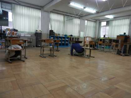 今日は予告なしの避難訓練を中間休みに行いました。地震が起こった想定での訓練です。
