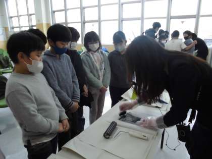輪転機で印刷できる仕組みを実演してくださいました。みんな真剣に見入っています!
