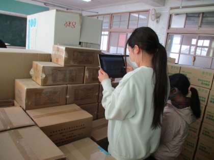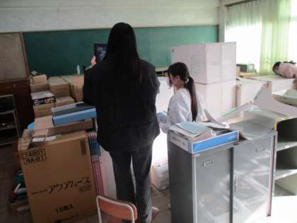 防災プロジェクトを進めています。この日は学校の備蓄倉庫にあるものを詳しく調べにいきました。水がどれだけあるのか数えたり、物資の写真を撮ったりしました。教室に帰ってからはどのようにまとめていくか話し合っていました。