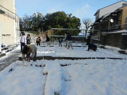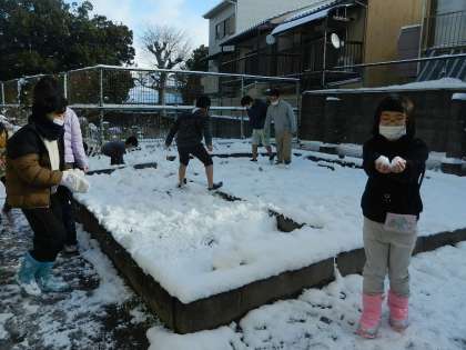 手を真っ赤にしながら雪玉を作ったり、チューリップの上の雪をよけたり・・・。